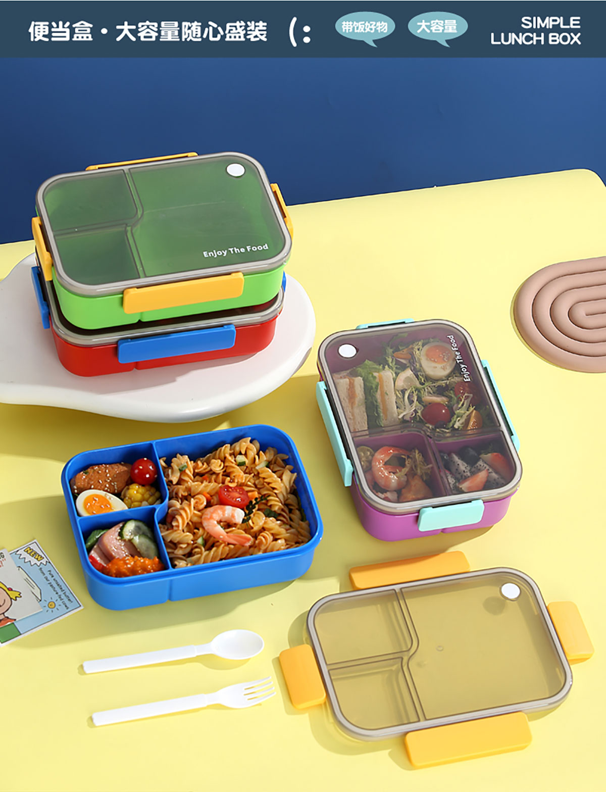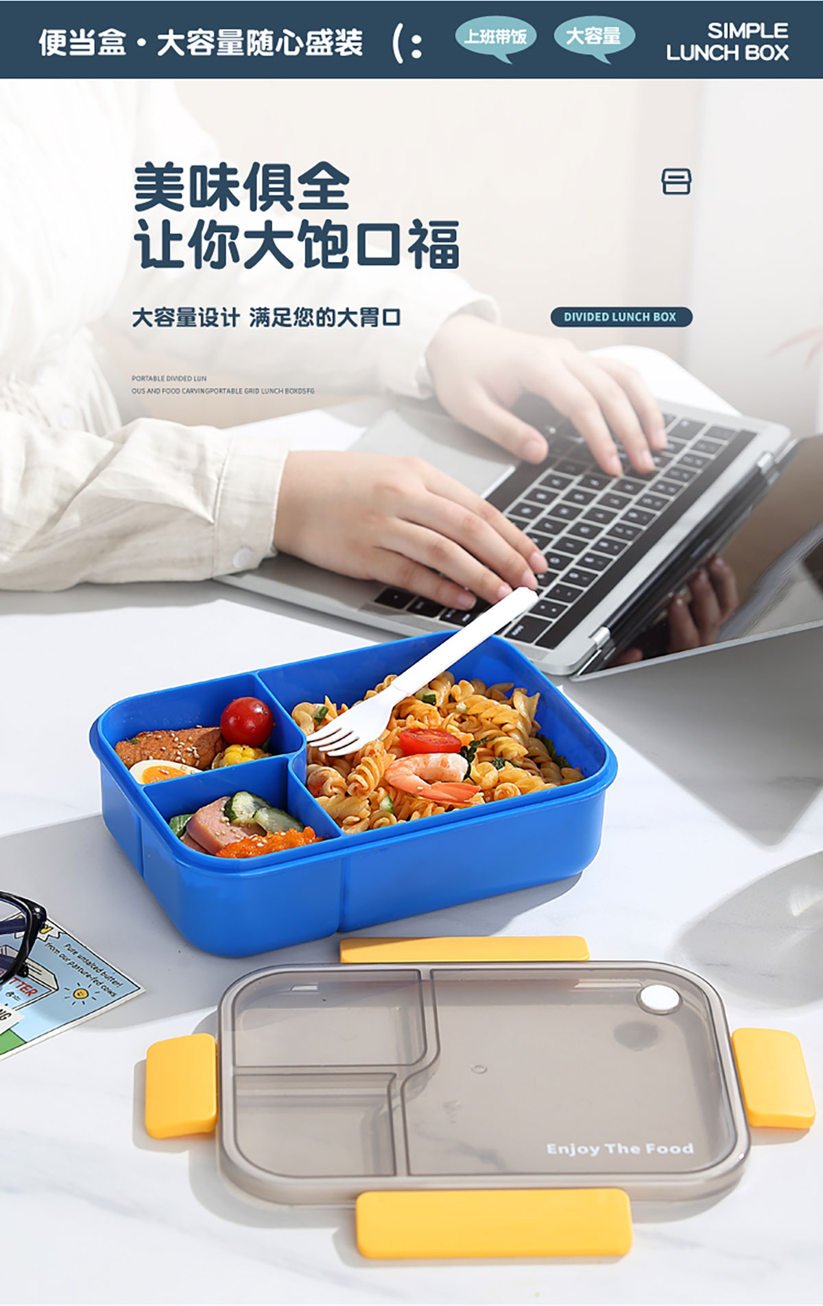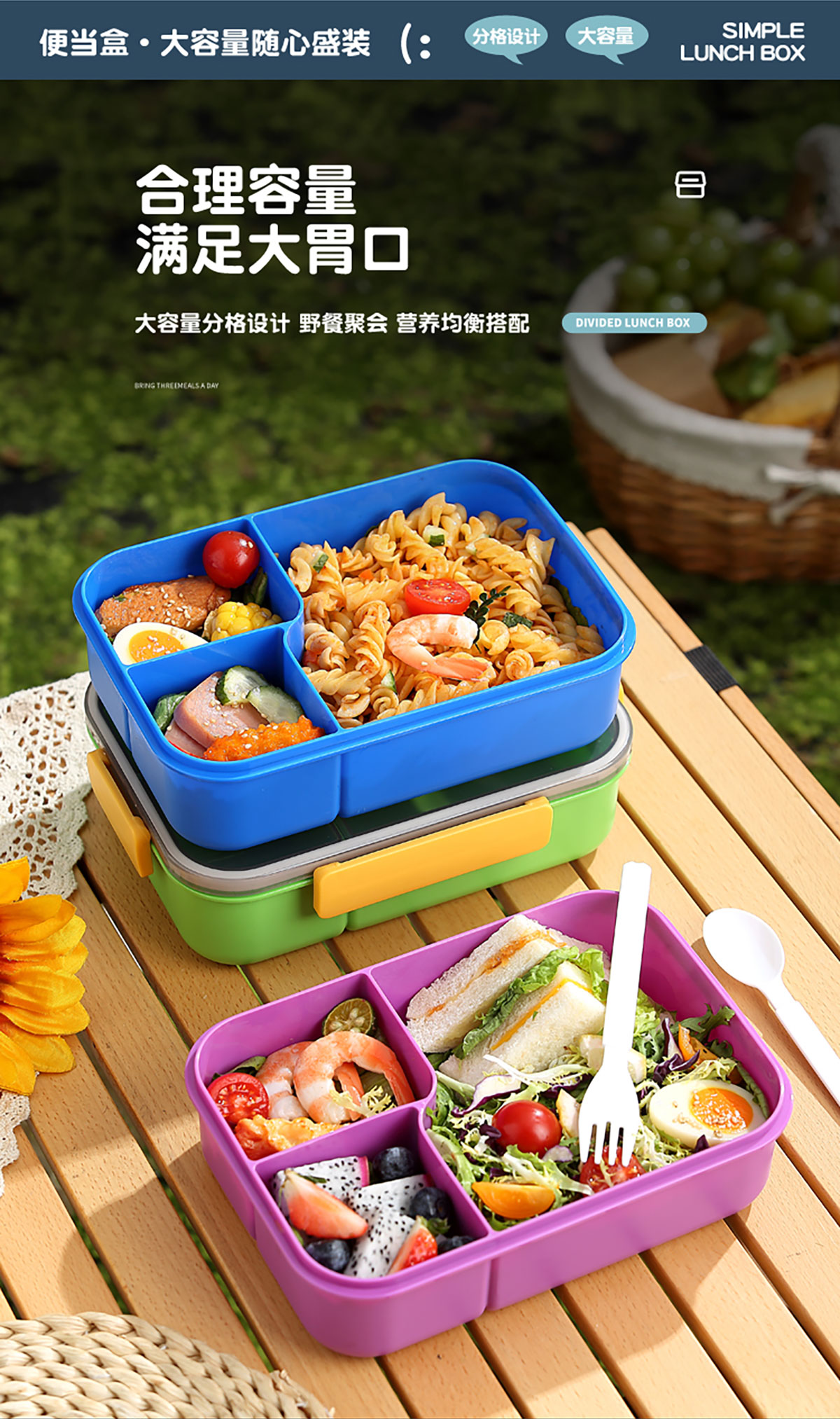 簡約透明分格飯盒1450ml