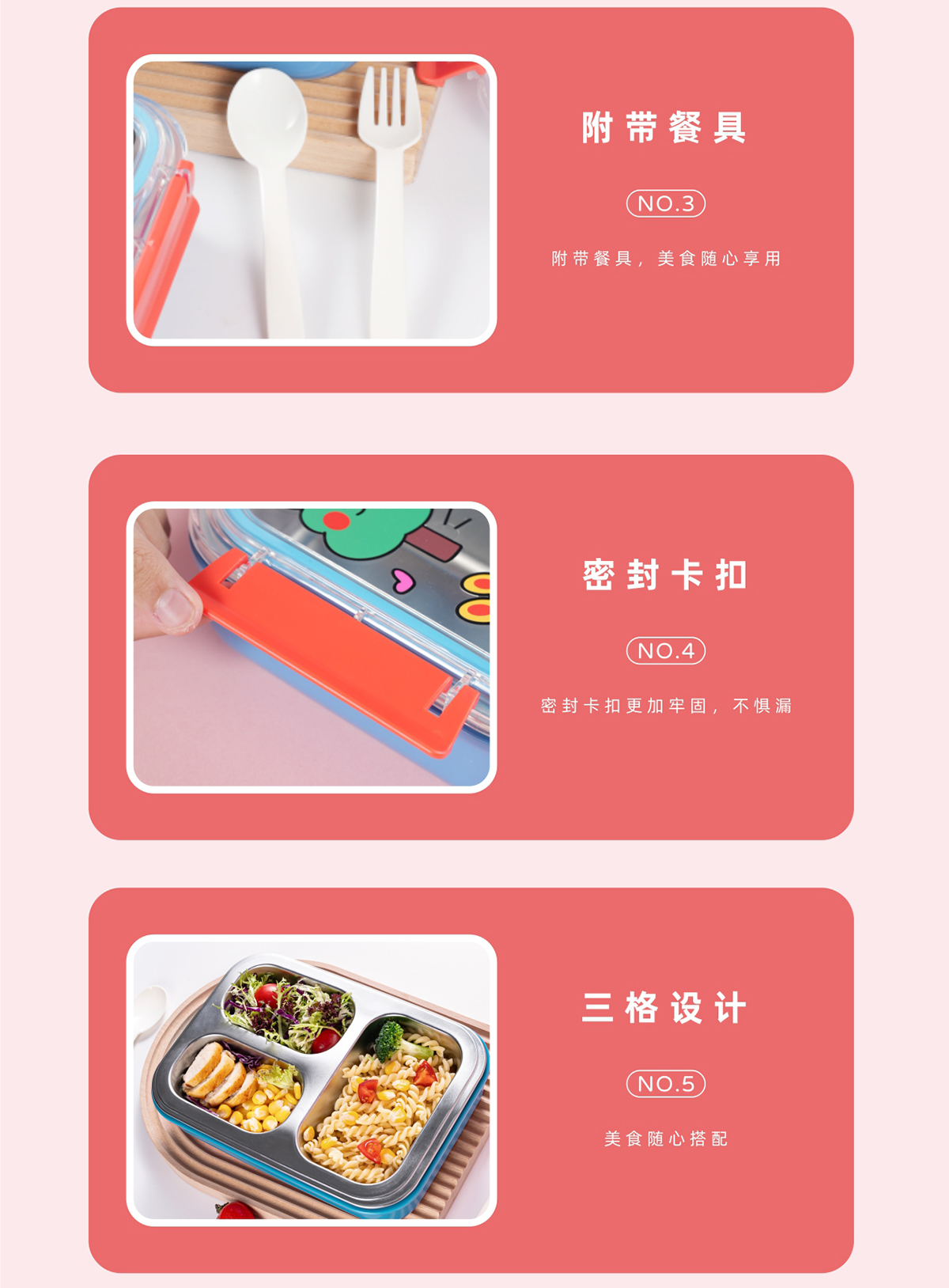 趣繪不銹鋼分格餐盒(帶餐具)