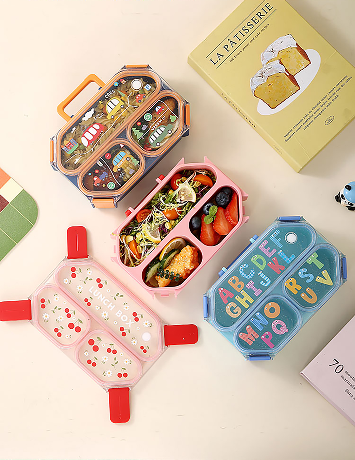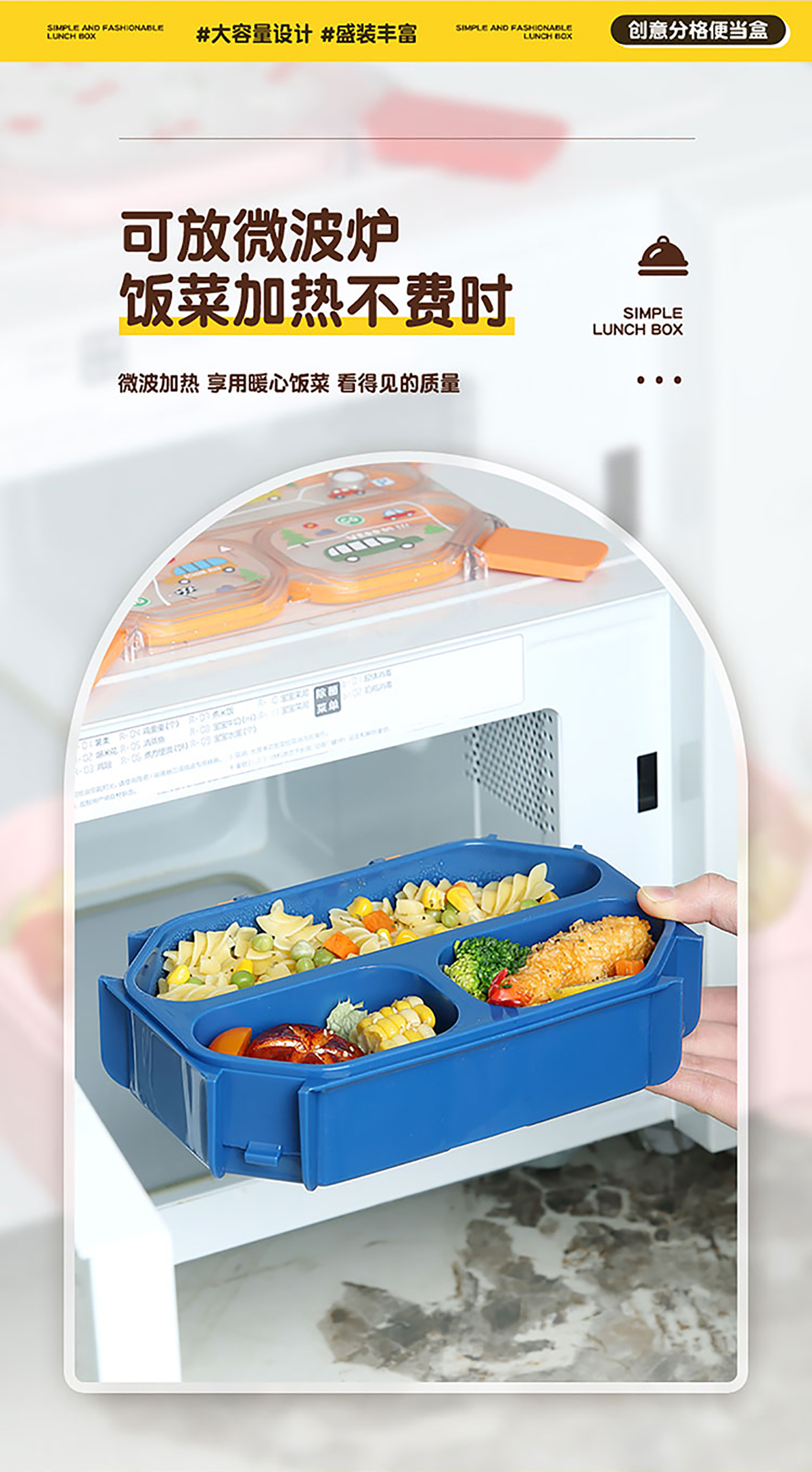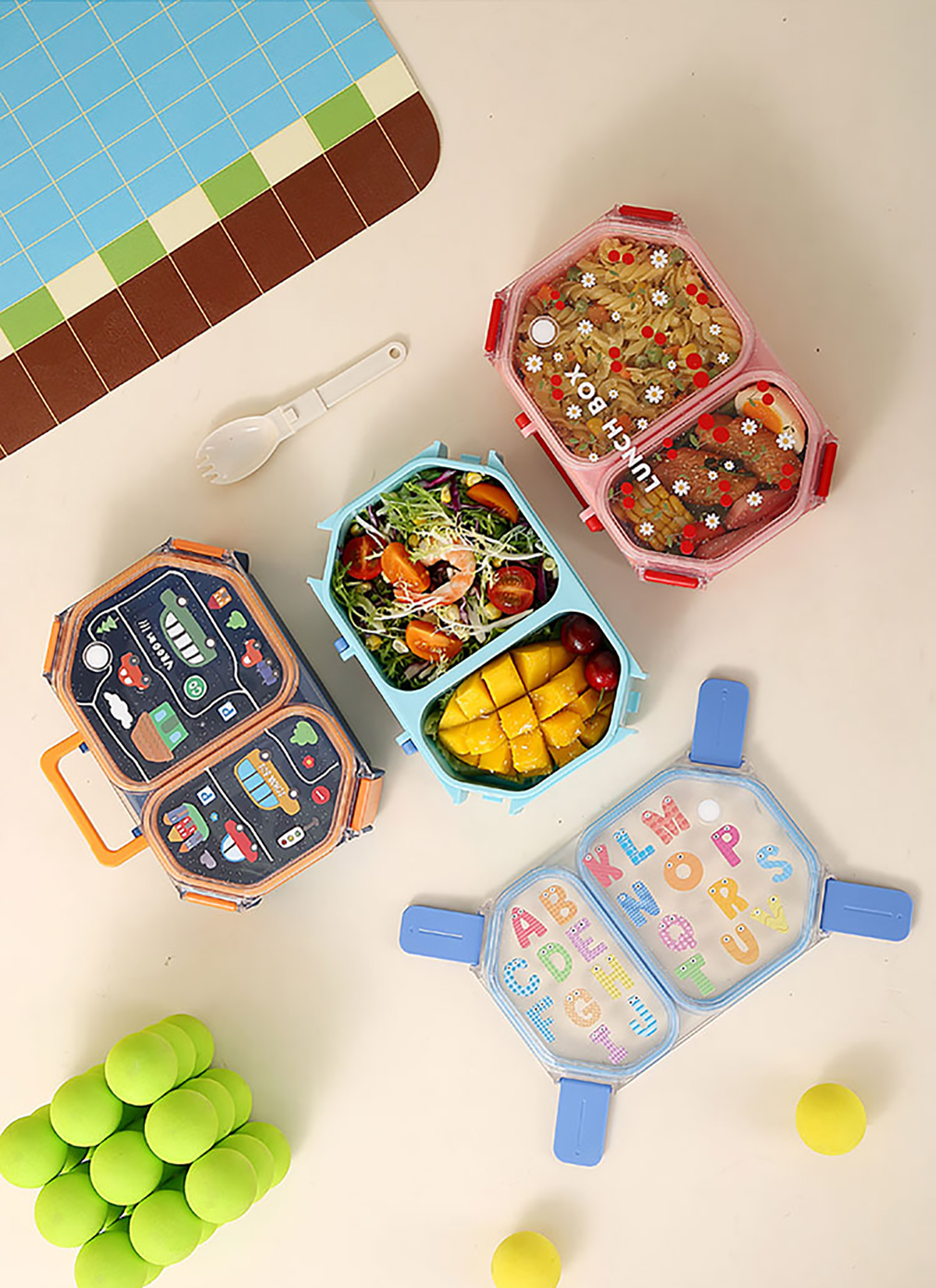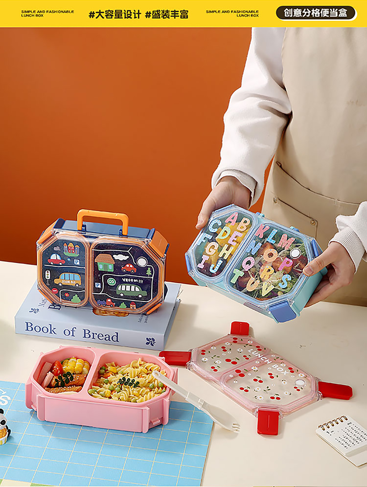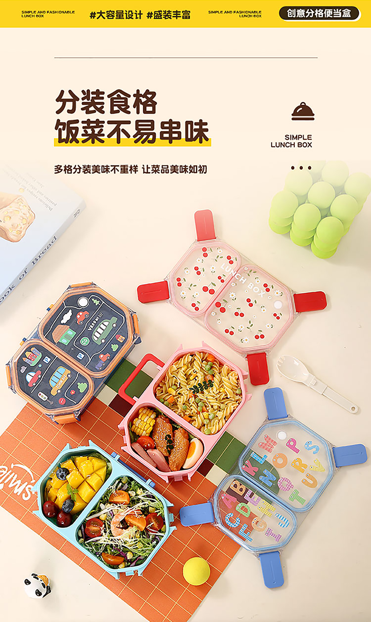 UV手提獨(dú)立密封長(zhǎng)方形塑料兩格980ml/三格900ml餐盒 (配PP折疊叉勺)