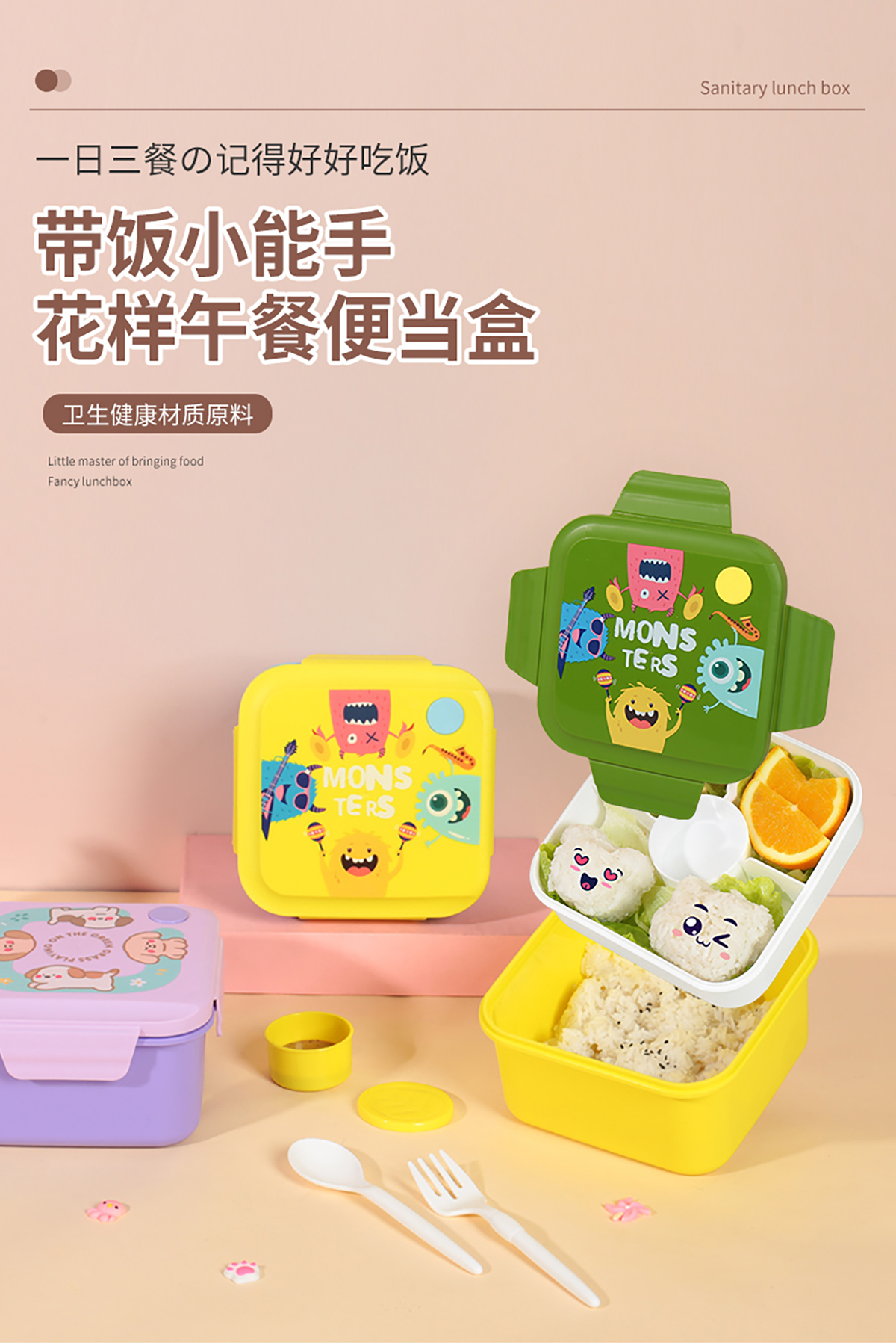 HH-XJ8565(小趣怪方形飯盒):185*185*75mm